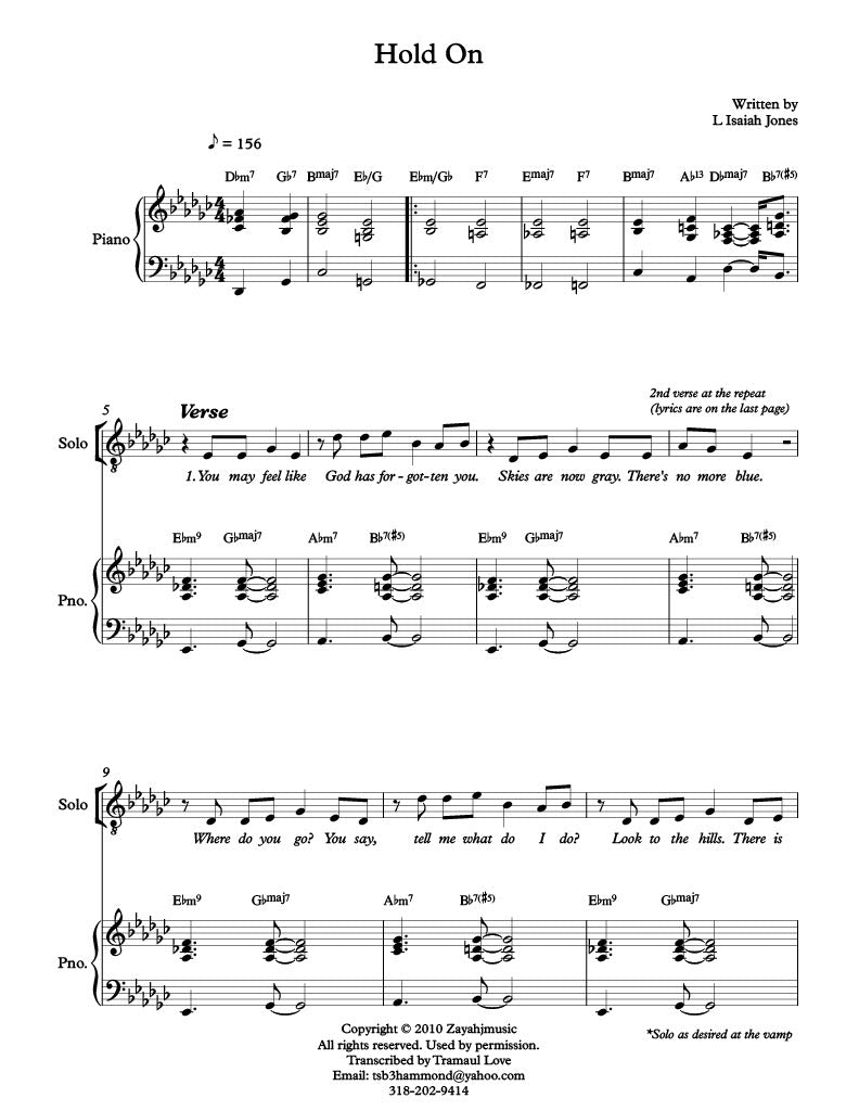 "Hold On" By L. Isaiah Jones (Sheet Music)